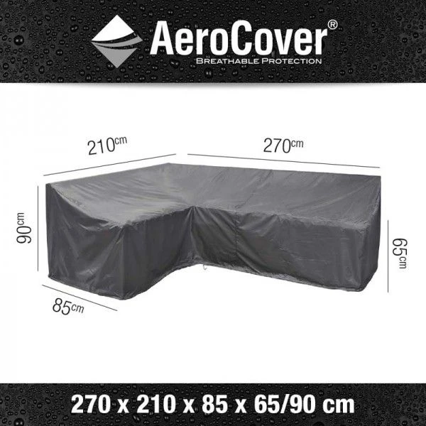 Ademende loungesethoes voor hoeksets met een hoge rug in een L-vorm. Tuinmeubelhoes o.a. geschikt voor L-vormige hoeksets met een 90° hoek.