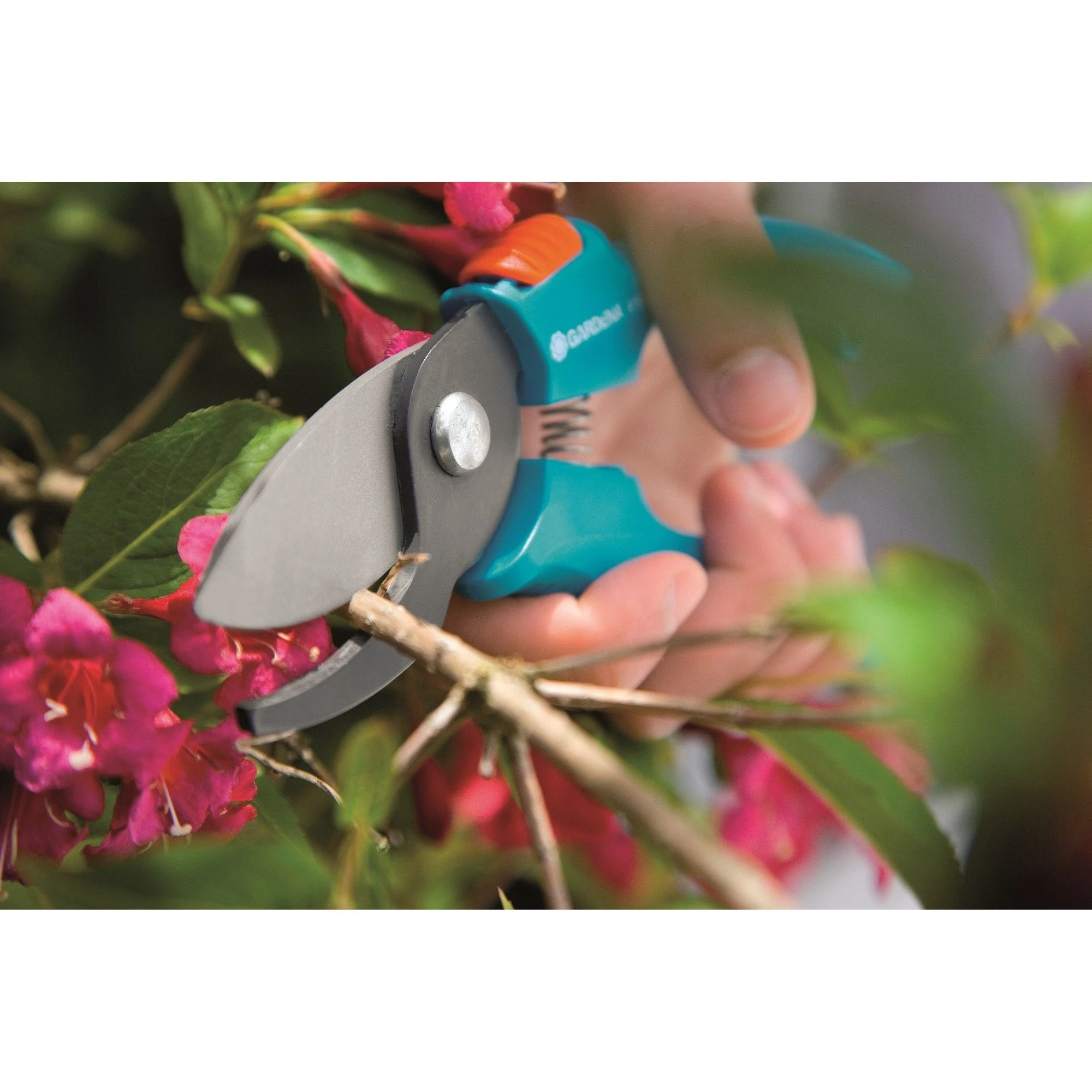 De GARDENA Classic snoeischaar is de klassieker onder de snoeischaren – met alle eigenschappen van een goede snoeischaar. Deze snoeischaar is krachtig, modern en ergonomisch, en vooral geschikt voor het snoeien van bloemen en jonge scheuten. De messen van de gebogen snoeikop zijn precisiegeslepen en voorzien van een antikleefcoating. Dankzij de ergonomisch gevormde handgrepen ligt de snoeischaar optimaal in de hand. De snoeischaar heeft twee werkposities, één voor krachtsnoei en één voor snelsnoei. De snoeischaar heeft een sapgeul en een draadafsnijder. Met de enkelhandige veiligheidsvergrendeling kan de snoeischaar gemakkelijk worden vergrendeld en veilig opgeborgen. De Classic snoeischaar kan takken met een maximale diameter van 18 mm snoeien.