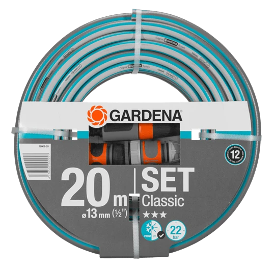 De drukbestendige GARDENA Classic slang is vormvast door het gebruik van hoogwaardig weefsel en is vrij van schadelijke weekmakers (ftalaten) en zware metalen, en is natuurlijk UV-bestendig. Indien gewenst, systematisch uit te breiden met Original GARDENA System koppelstukken en besproeiingsproducten. Kortom de perfecte voorwaarden voor eenvoudig en flexibel gebruik in uw tuin. De slang is vrij van schadelijke weekmakers (ftalaten kleiner dan 0,1%), vrij van cadmium, lood en barium (kleiner dan 0,1%), en uiteraard UV-bestendig. Barstdruk: 22 bar. Garantie: 12 jaar.