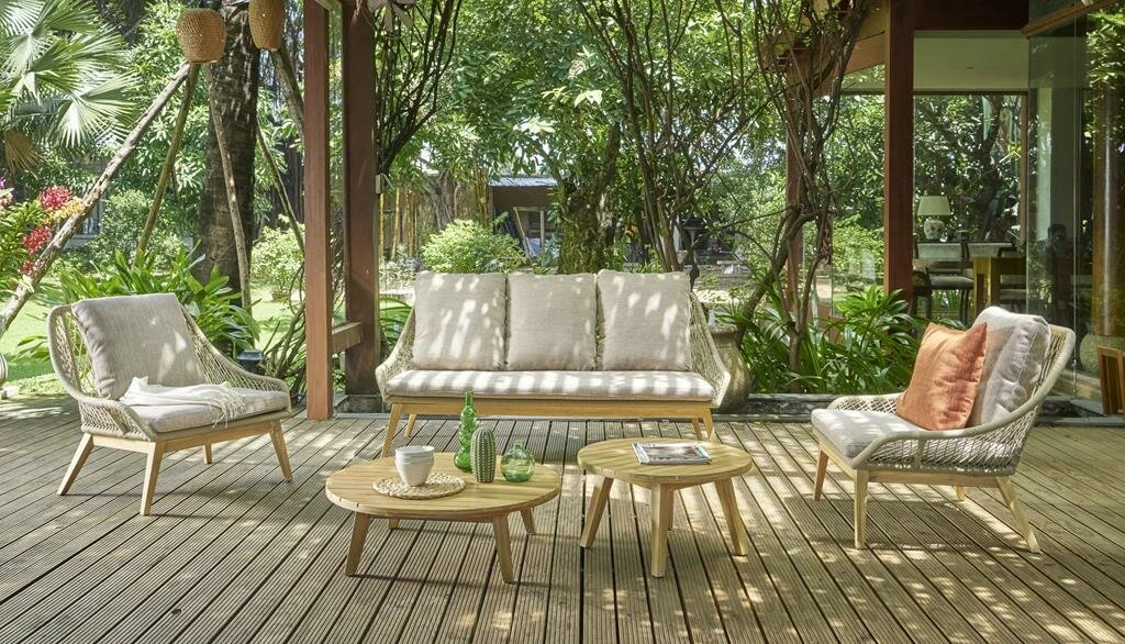 Zit je het liefst buiten met een hapje en drankje met het hele gezien of lekker rustig alleen dan is de loungeset Danao echt iets voor jou! De Danao lounge set is compleet met 2 prachtige stoelen, een bank en twee tafels en natuurlijk voorzien van heerlijk comfortabele kussens. De Danao loungeset heeft een mooie vormgeving waardoor die in elke tuin past. De Danao is gemaakt van hout, de leuningen bestaan uit geweven touwen die snel op drogen na een regenbui.